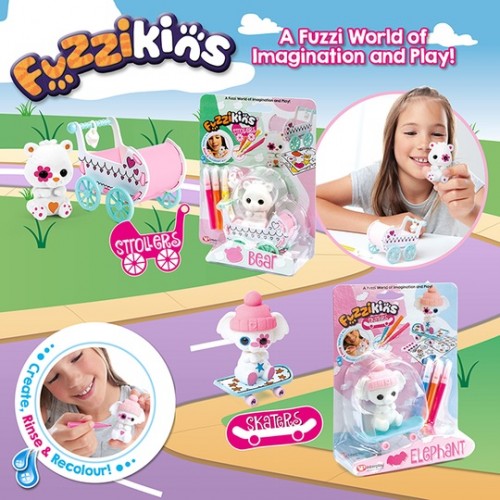 Η σειρά Fuzzikins αποτελείται από αξιολάτρευτα πλάσματα που οι μικροί μας φίλοι θα χρωματίζουν και θα παίζουν μαζί τους. Θα μπορούν να ξεπλένουν τα σχέδια από τα ειδικά μαρκαδοράκια και να διακοσμούν τα ζωάκια τους ξανά και ξανά. Θα περνούν χαρούμενες ώρες δημιουργικής απασχόλησης!