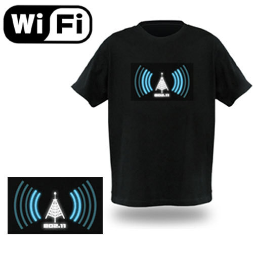 Ιδανικό για εκείνους που προτιμούν να είναι online παρόλο που βρίσκονται έξω από το σπίτι τους. Ο καλύτερος τρόπος για να βρείτε το τέλειο σημείο, για να σερφάρετε σε μια καφετέρια ή γενικά σε ένα χώρο που διαθέτει WiFi. Το λεπτό, εύκαμπτο φωτιζόμενο πάνελ στο μπροστινό μέρος της μπλούζας, τροφοδοτείται από μια μπαταρία που διαθέτει ο αισθητήρας στο εσωτερικό της μπλούζας. Το πακέτο του αισθητήρα μπορεί να αφαιρεθεί για να πλύνετε την μπλούζα σας. Ένα εκπληκτικό δώρο για όλους τους φαν του Wifi Internet και γενικά για οποιονδήποτε θέλει να προωθήσει την προσβασιμότητα στο WiFi.