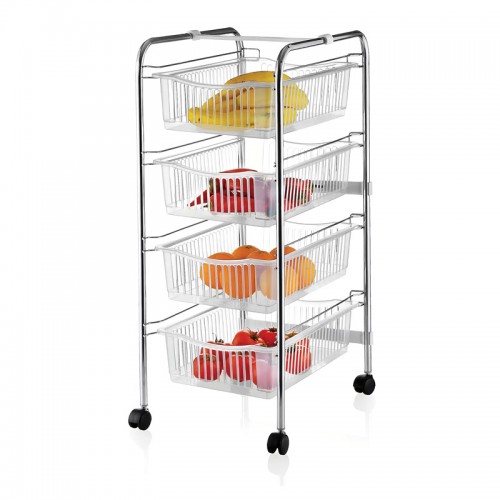 - Περιλαμβάνει τρία ράφια και ροδάκια για εύκολη μετακίνηση.