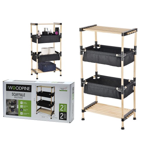 Ραφιέρα Επιδαπέδια Με 2 Ράφια 2 Καλάθια Φυσικό-Μαύρο Ξύλο-Ύφασμα 50x28x92cm