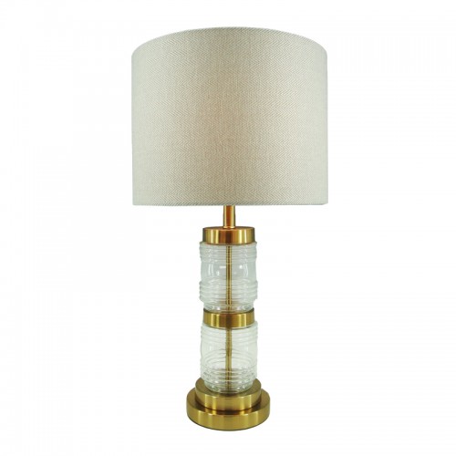 Επιτραπέζιο φωτιστικό Wenxie Inart Ε27 χρυσό μέταλλο-γυαλί-μπεζ ύφασμα Φ32x53εκ