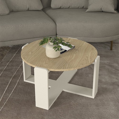 Τραπέζι Toda pakoworld mdf σε sonoma απόχρωση με μαύρα μεταλλικά πόδια Φ120x75εκ