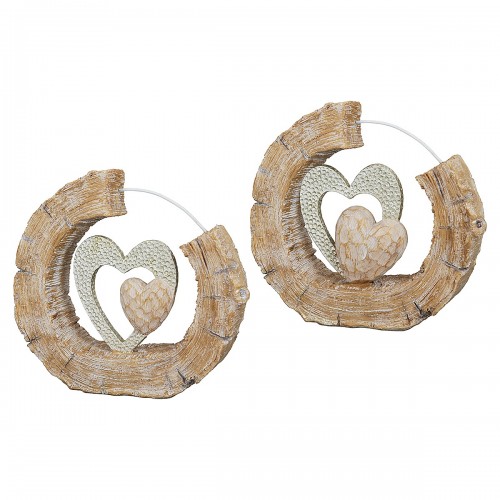 Διακοσμητικό ArteLibre Καρδιές Σε Κορμό Ξύλου Φυσικό-Λευκό Polyresin 4x19x17.5cm Σε 2 Σχέδια