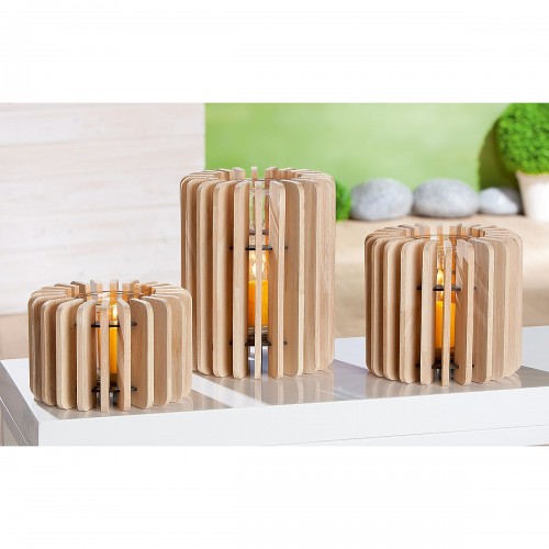 Κηροπήγιο ArteLibre Φυσικό-Διάφανο Ξύλο-Γυαλί 13cm