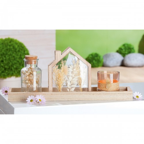 Σετ Κερί Σε Βάζο-Δοχείο-LED Σπιτάκι Σε Δίσκο ArteLibre Γυαλί-Ξύλο 10x40x17cm 3Τμχ