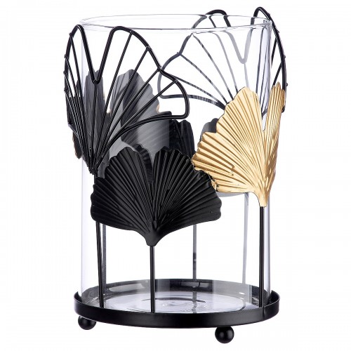 Φανάρι ArteLibre Με Διακόσμηση Φύλλα Μαύρο-Διάφανο Μέταλλο-Γυαλί 19cm