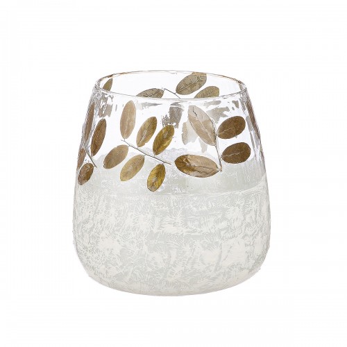 Κηροπήγιο ArteLibre Με Διακόσμηση Φύλλα Πράσινο-Λευκό Γυαλί Φ15x16cm