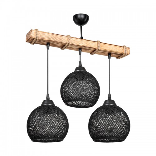 - Περιμετρικά του ξύλου φέρει σχοινί που προσθέτει μία boho πινελιά στο φωτιστικό και απογειώνει το αισθητικό αποτέλεσμα.