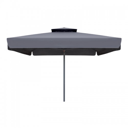 Τετράγωνη ομπρέλα αλουμινίου με τηλεσκοπικό μηχανισμό και διπλό αεραγωγό που επιτρέπει την κυκλοφορία του αέρα μειώνοντας ταυτόχρονα την πίεση του. Ιδανική επιλογή για επαγγελματική χρήση όπως beach bars, πισίνες και χώρους εστίασης.