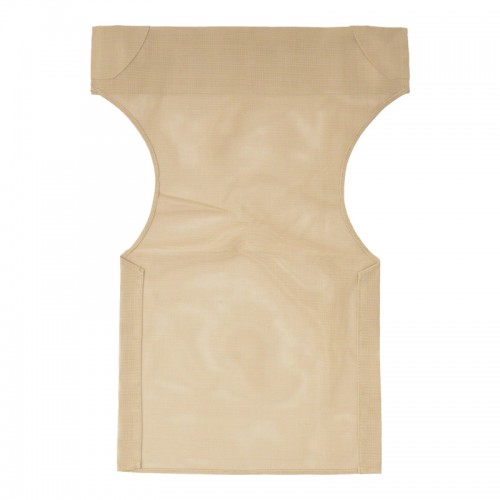 - Textilene: Το textilene είναι ένα εξαιρετικά ανθεκτικό υλικό που χρησιμοποιείται ευρέως σε επίπλωση εξωτερικών χώρων και εξαρτήματα. Αποτελείται από πολυεστερικές ινώδεις που επικαλύπτονται με PVC (πολυβινυλοχλωρίδιο), δημιουργώντας ένα υλικό που συνδυάζει ανθεκτικότητα, αντοχή στις καιρικές συνθήκες και εύκαμπτη υφή. Το υλικό αυτό επιτρέπει τη διέλευση του αέρα, βοηθώντας στη διατήρηση μιας δροσερής αίσθησης κατά τη χρήση.