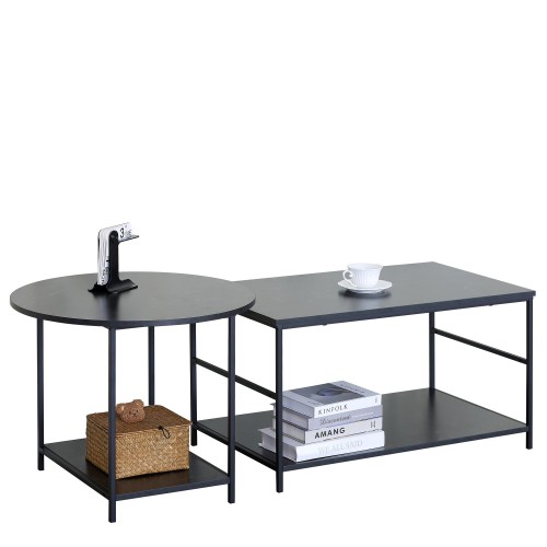 Τραπεζάκι σαλονιού σετ 2 τμχ Vetro Megapap μέταλλο - γυαλί χρώμα μαύρο Ø60x43εκ.