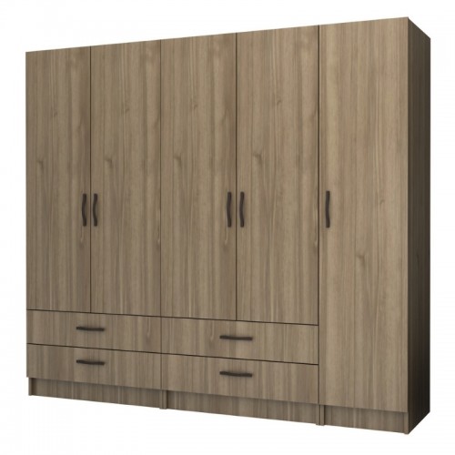 Ντουλάπα ρούχων Ricardo Megapap εξάφυλλη με πατάρι και συρτάρια χρώμα καρυδί 240x51,8x240εκ.