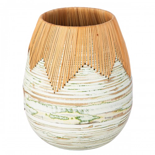 Βάζο Σφαιρικό 'Fortaleza' Μπαμπού-Ρατάν Εκρού-Πράσινο 35x30cm