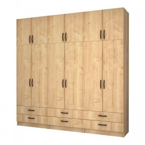 Ντουλάπα ρούχων Ricardo Megapap εξάφυλλη με πατάρι και συρτάρια χρώμα φυσικό οξιάς 240x51,8x240εκ.