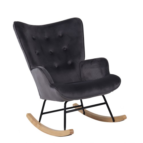 Πολυθρόνα Κουνιστή ArteLibre DARIA Γκρι Βελούδο-Μέταλλο-Ξύλο 85x69x90cm