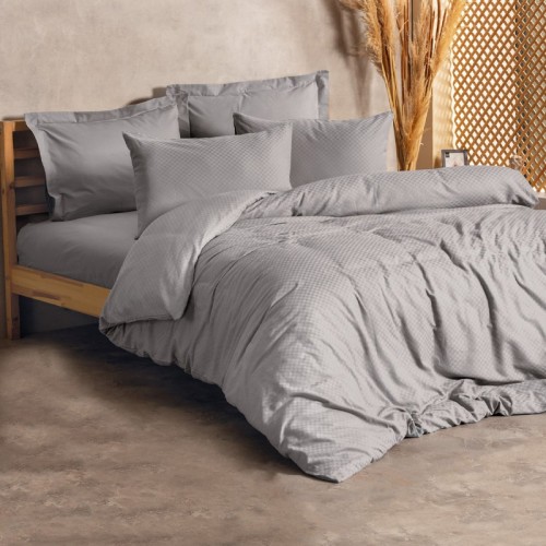 Σετ παπλωματοθήκη Plaid Cotton Box 4 τμχ Διπλή (200x220) χρώμα γκρι