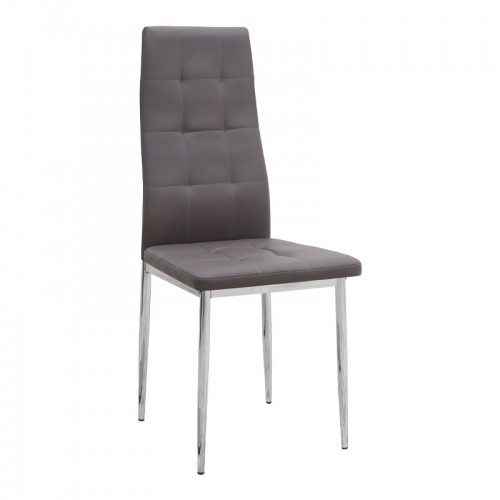Η καρέκλα Rosa διαθέτει κάθισμα από τεχνόδερμα PU σε καφέ χρώμα και μεταλλικά πόδια χρωμίου, προσφέροντας αντοχή και πρακτικότητα στην καθημερινή χρήση. Ο λιτός, μοντέρνος σχεδιασμός της την κάνει κατάλληλη για κάθε τύπο τραπεζαρίας, οικιακής ή επαγγελματικής, προσφέροντας μια διακριτική αλλά κομψή παρουσία στον χώρο.