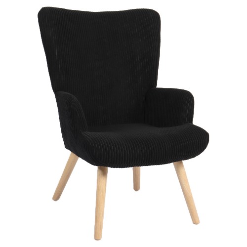 Πολυθρόνα ArteLibre LIRA Μαύρο Ύφασμα Κοτλέ-Ξύλο 94.5x64x70.5cm
