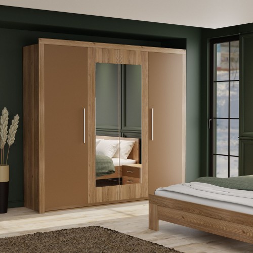 Nτουλάπα ρούχων τετράφυλλη Olympus pakoworld με 4 συρτάρια χρώμα castillo-toro 162x57x183εκ