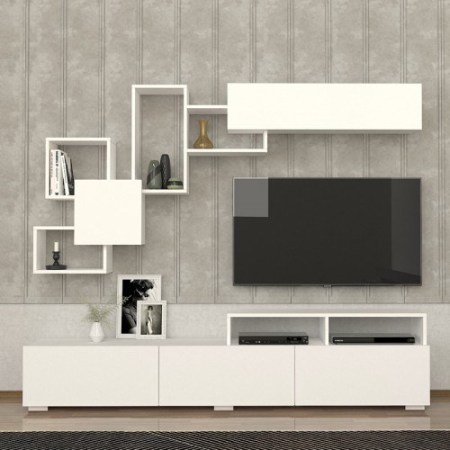 Σύνθεση τηλεόρασης Stamatia Megapap χρώμα λευκό 210x36,8x46,8εκ.