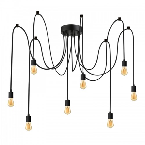 Διαθέτει μαύρη μεταλλική βάση οροφής, από την οποία κρέμονται 8 μαύρα μακριά καλώδια που καταλήγουν σε 8 μαύρα ντουί. Τα καλώδια μπορείτε να τα τοποθετήσετε όπως επιθυμείτε.