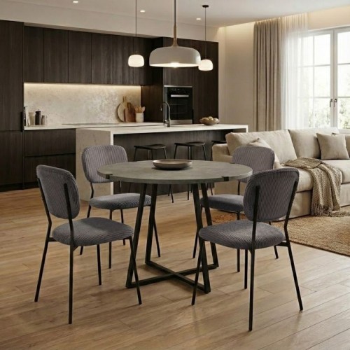 Η τραπεζαρία Rubes - Kevin θα φέρει μία αίσθηση εκλεπτυσμένης κομψότητας στον χώρο σας. Το πλούσιο κοτλέ ύφασμα της καρέκλας χαρίζει ζεστασιά και υφή, ενώ τα μεταλλικά πόδια προσδίδουν μοντέρνο χαρακτήρα και σταθερότητα. Ιδανική επιλογή τόσο για το σπίτι όσο και για επαγγελματικούς χώρους που θέλουν να επικοινωνήσουν ποιότητα και design σε κάθε λεπτομέρεια.