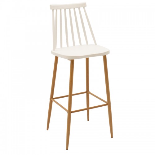 Σκαμπό μπαρ Aurora pakoworld λευκό pp-φυσικό πόδι 42x47x109εκ
