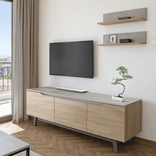 Η σύνθεση ολοκληρώνεται με δύο επιτοίχια ράφια για την προβολή των αγαπημένων σας διακοσμητικών.