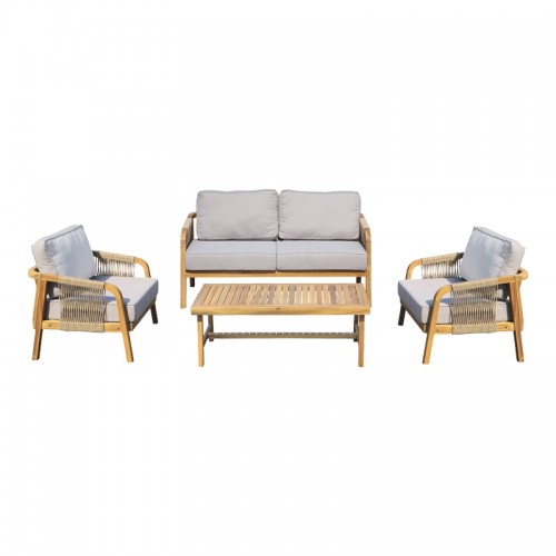 - Σκελετός κατασκευασμένος από μασίφ ξύλο ακακίας που συνδυάζεται αρμονικά με πλέξη από σχοινί PP, προσφέροντας στιλ και αντοχή σε φυσικό χρώμα.