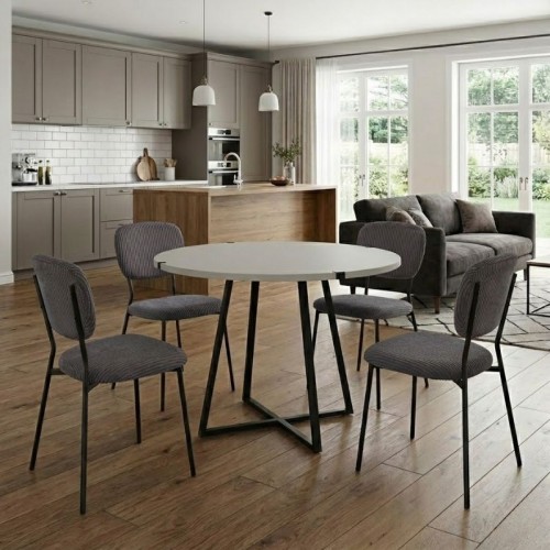 Η τραπεζαρία Rubes - Kevin θα φέρει μία αίσθηση εκλεπτυσμένης κομψότητας στον χώρο σας. Το πλούσιο κοτλέ ύφασμα της καρέκλας χαρίζει ζεστασιά και υφή, ενώ τα μεταλλικά πόδια προσδίδουν μοντέρνο χαρακτήρα και σταθερότητα. Ιδανική επιλογή τόσο για το σπίτι όσο και για επαγγελματικούς χώρους που θέλουν να επικοινωνήσουν ποιότητα και design σε κάθε λεπτομέρεια.