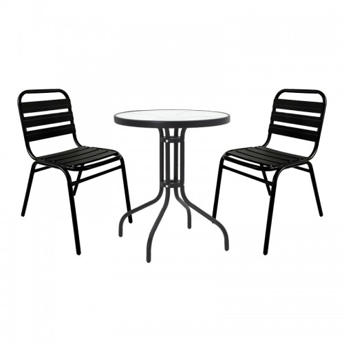Τραπεζαρία Valor-Calan pakoworld σετ 5τεμ μέταλλο μαύρο-γυαλί-textilene μαύρο 110x60x70εκ