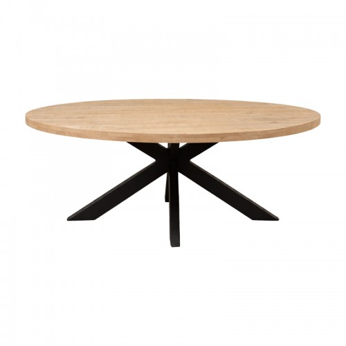 Τραπεζι Royalty pakoworld μασίφ mango ξύλο καρυδί-πόδι μαύρο μέταλλο Φ130x77εκ