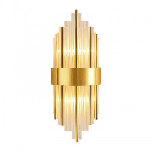 Σχεδιασμένο για να μαγνητίζει το βλέμμα, διαθέτει μια μοναδική σύνθεση από λεπτές, διάφανες ράβδους που περιβάλλουν μια κεντρική μεταλλική λωρίδα σε χρυσό τόνο. Αυτός ο συνδυασμός δημιουργεί ένα παιχνίδι φωτός και σκιάς, προσφέροντας έναν ατμοσφαιρικό και πολυτελή φωτισμό που θα αναβαθμίσει αμέσως την αισθητική του χώρου σας.
