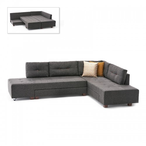 Γωνιακός καναπές - κρεβάτι Manama Megapap δεξιά γωνία υφασμάτινος χρώμα ανθρακί 280x206x85εκ.