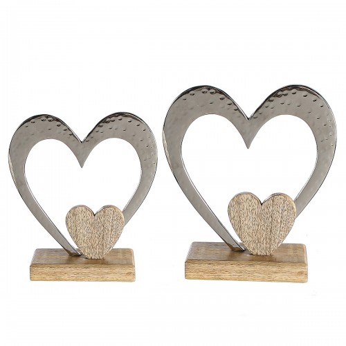Διακοσμητικό ArteLibre Καρδιές Σε Βάση Ασημί-Φυσικό Αλουμίνιο-Ξύλο 7x13x21cm