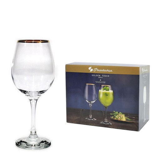Ποτήρι κρασιού κολωνάτο με χρυσό στόμιο σετ 6τμχ