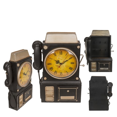 Κλειδοθήκη Τηλέφωνο 6 Θέσεων Με Ρολόι Μπρονζέ-Μαύρο Μέταλλο 26x35.5cm