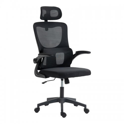 - Αποθήκευση & Ευελιξία: Τα μπράτσα τύπου flip-up επιτρέπουν την αναδίπλωση τους κατά 90°, δίνοντας τη δυνατότητα να σπρώξετε την καρέκλα εντελώς κάτω από το γραφείο, εξοικονομώντας έτσι χώρο όταν δεν χρησιμοποιείται.