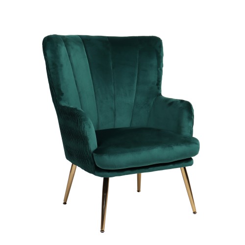 Πολυθρόνα ArteLibre KOLDENREE Πράσινο Βελούδο-Μέταλλο-Ξύλο 74x72x91cm