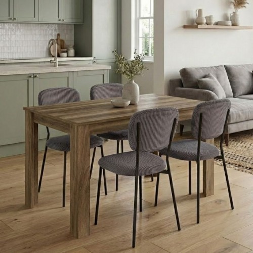 Η τραπεζαρία Darlen - Kevin θα φέρει μία αίσθηση εκλεπτυσμένης κομψότητας στον χώρο σας. Το πλούσιο κοτλέ ύφασμα της καρέκλας χαρίζει ζεστασιά και υφή, ενώ τα μαύρα μεταλλικά πόδια προσδίδουν μοντέρνο χαρακτήρα και σταθερότητα. Ιδανική επιλογή τόσο για το σπίτι όσο και για επαγγελματικούς χώρους που θέλουν να επικοινωνήσουν ποιότητα και design σε κάθε λεπτομέρεια.