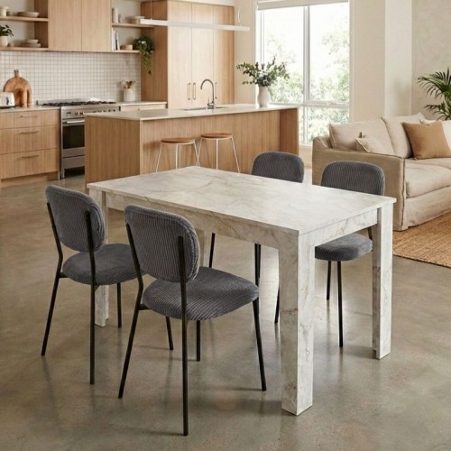 Η τραπεζαρία Darlen - Kevin θα φέρει μία αίσθηση εκλεπτυσμένης κομψότητας στον χώρο σας. Το πλούσιο κοτλέ ύφασμα της καρέκλας χαρίζει ζεστασιά και υφή, ενώ τα μαύρα μεταλλικά πόδια προσδίδουν μοντέρνο χαρακτήρα και σταθερότητα. Ιδανική επιλογή τόσο για το σπίτι όσο και για επαγγελματικούς χώρους που θέλουν να επικοινωνήσουν ποιότητα και design σε κάθε λεπτομέρεια.