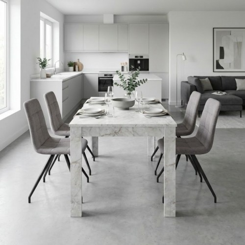 Η τραπεζαρία Darlen - Bianca θα προσθέσει μοντέρνα κομψότητα και άνεση σε κάθε χώρο. Το απαλό ύφασμα της καρέκλας προσφέρει αισθητική άνεσης, ενώ τα στιβαρά, μαύρα μεταλλικά πόδια προσδίδουν μοντέρνα και σταθερή δομή. Είναι ιδανική για την τραπεζαρία ενός μοντέρνου σπιτιού, αλλά και για επαγγελματικούς χώρους όπως καφέ, εστιατόρια ή AirBnB - όπου η λεπτομέρεια και η αισθητική κάνουν τη διαφορά.