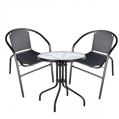Σετ Τραπεζαρία Κήπου Earth Μέταλλο Μαύρο Με 2 Πολυθρόνες