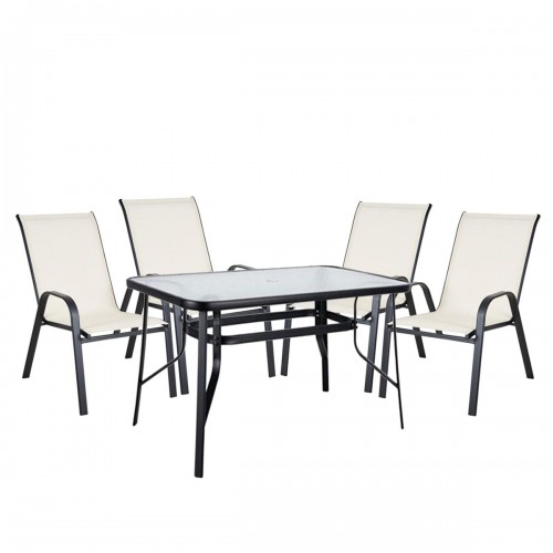 Σετ Τραπεζαρία Κήπου Sun Μέταλλο Κρεμ/Μαύρο Με 4 Πολυθρόνες