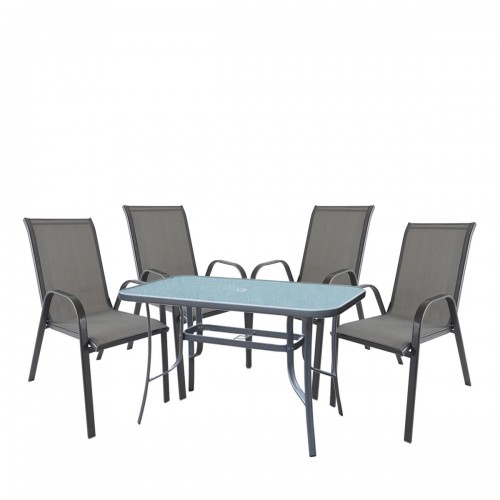 Σετ Τραπεζαρία Κήπου Sun Μέταλλο Γκρι Με 4 Πολυθρόνες