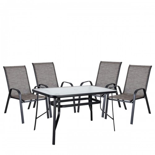 Σετ Τραπεζαρία Κήπου Sun Μέταλλο Μαύρο/Καφέ Με 4 Πολυθρόνες