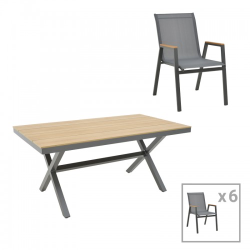To σετ περιλαμβάνει έξι πολυθρόνες και ένα τραπέζι.
