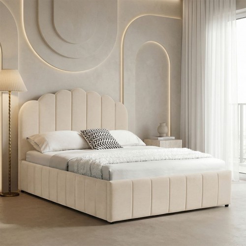 Κρεβάτι Υπόστρωμα μονό Pakda pakoworld κρεμ βελούδο 90x200εκ