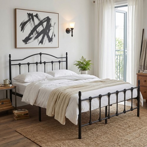- Κατασκευασμένο από υψηλής ποιότητας μέταλλο με ανθεκτικό μαύρο ματ φινίρισμα, αυτό το κρεβάτι είναι σχεδιασμένο για μακροχρόνια χρήση και εύκολη συντήρηση.