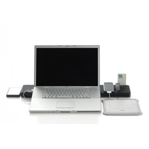 Είναι ο τέλειος διοργανωτής γραφείου για χειριστές laptop. Διαθέτει εσωτερικές εσοχές για να τυλίγονται και να συμμαζεύονται τα καλώδια που συνήθως είναι διάσπαρτα επάνω στο γραφείο. Υψώνεται μόλις 5χιλιοστά επάνω από το γραφείο για να είναι τα καλώδια ελεύθερα, ώστε να συνδεθούν ή να αποσυνδεθούν από το hub οποιαδήποτε στιγμή - στα πλάγια μπορείτε να συνδέσετε ένα scanner, μπροστά ένα iPod και πίσω ένα laptop ή μια κάμερα. Ένα εσωτερικό USB 2.0 hub 4 θυρών διατηρεί όλες τις περιφερειακές σας συσκευές συνδεδεμένες. Ένα βύσμα USB βγαίνει από τον σταθμό εκεί ακριβώς όπου χρειάζεται για να συνδέεται το laptop σας. Απλώς αναποδογυρίστε το μπροστινό μέρος του διαστημικού μας σταθμού ώστε να έχετε πρόσβαση στο hub και στα καλώδια.
